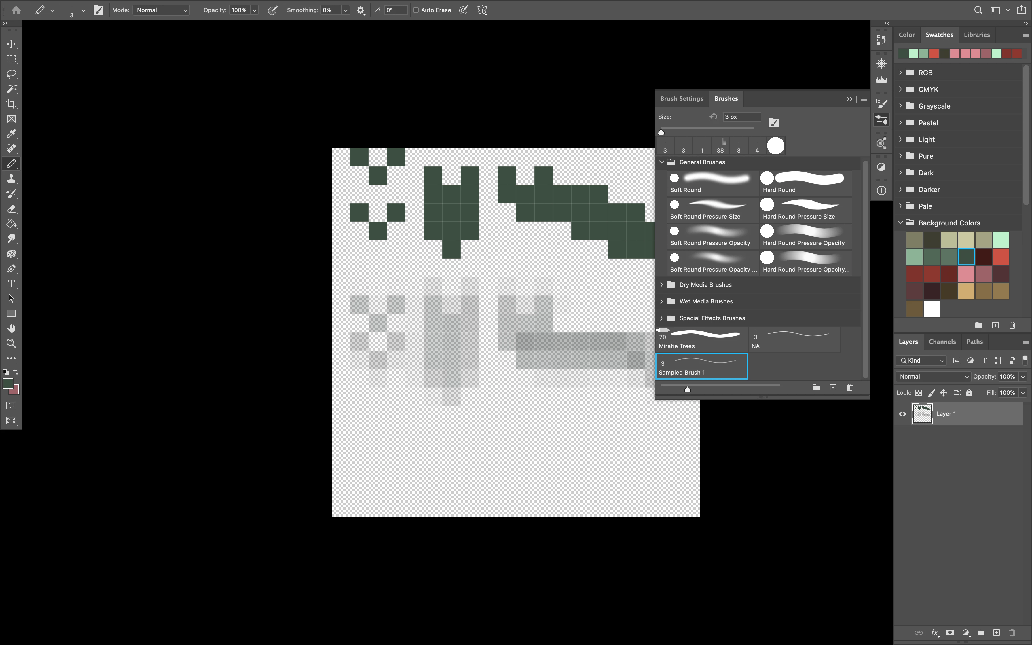 I've created a brush from a three pixel pattern that I can use either with the Brush tool or the Pencil too. That's great. But when I went to define a second brush preset (albeit days later in a new file), my new preset only works with the Brush Tool and not the Pencil tool. ...which is bizarre because I believe I did the same thing? Anti-aliasing is turned off, I made the defined preset using the pencil tool...
