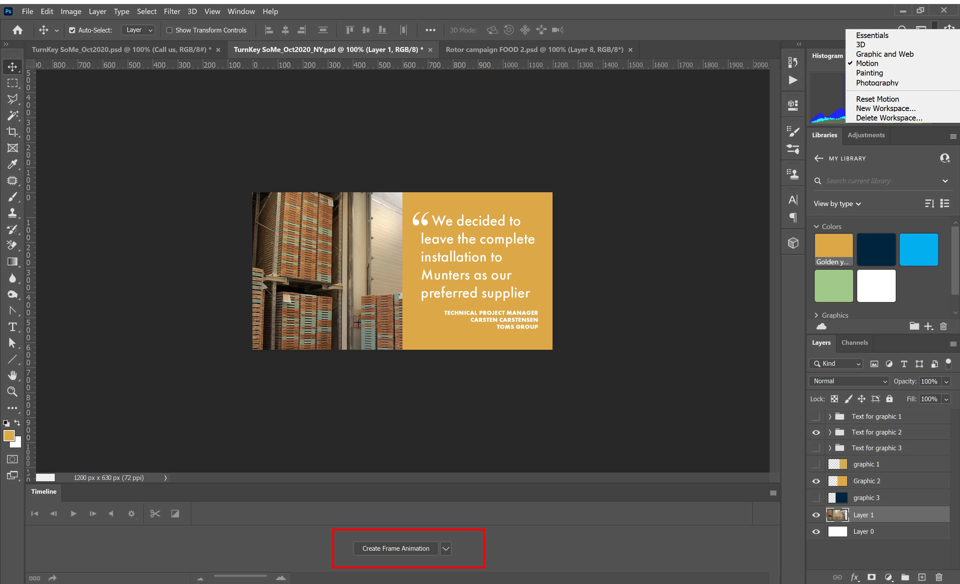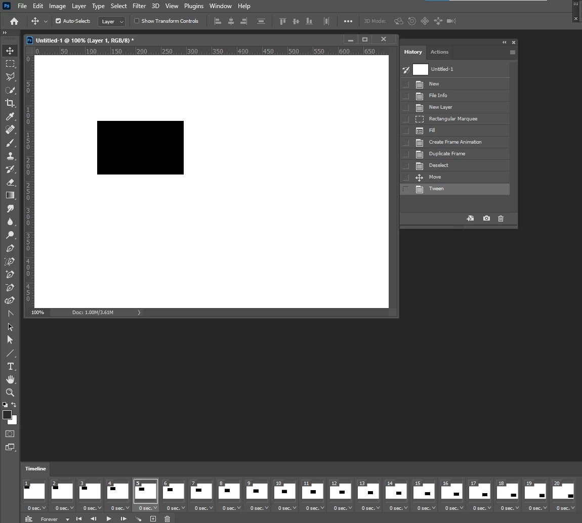 I use Windows 10 I just set my Photoshop 2021 version 22 the Workspace Motion Opened a new document. Added a black rectangle layer. Created a Frame animation time line added a frame and used tween to add 18 animation frames. I had no issues on Windows 10. Create Frame Animation does not look grayed out ine your image