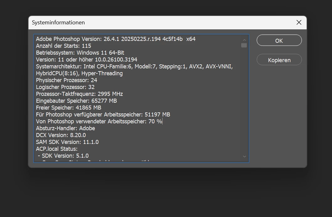 I found a lotot of closed threads here but:1 Disabling GPU is not a solution as of all the AI Functions now in Photoshop and the other solution downgrading to an older version was from 2021.