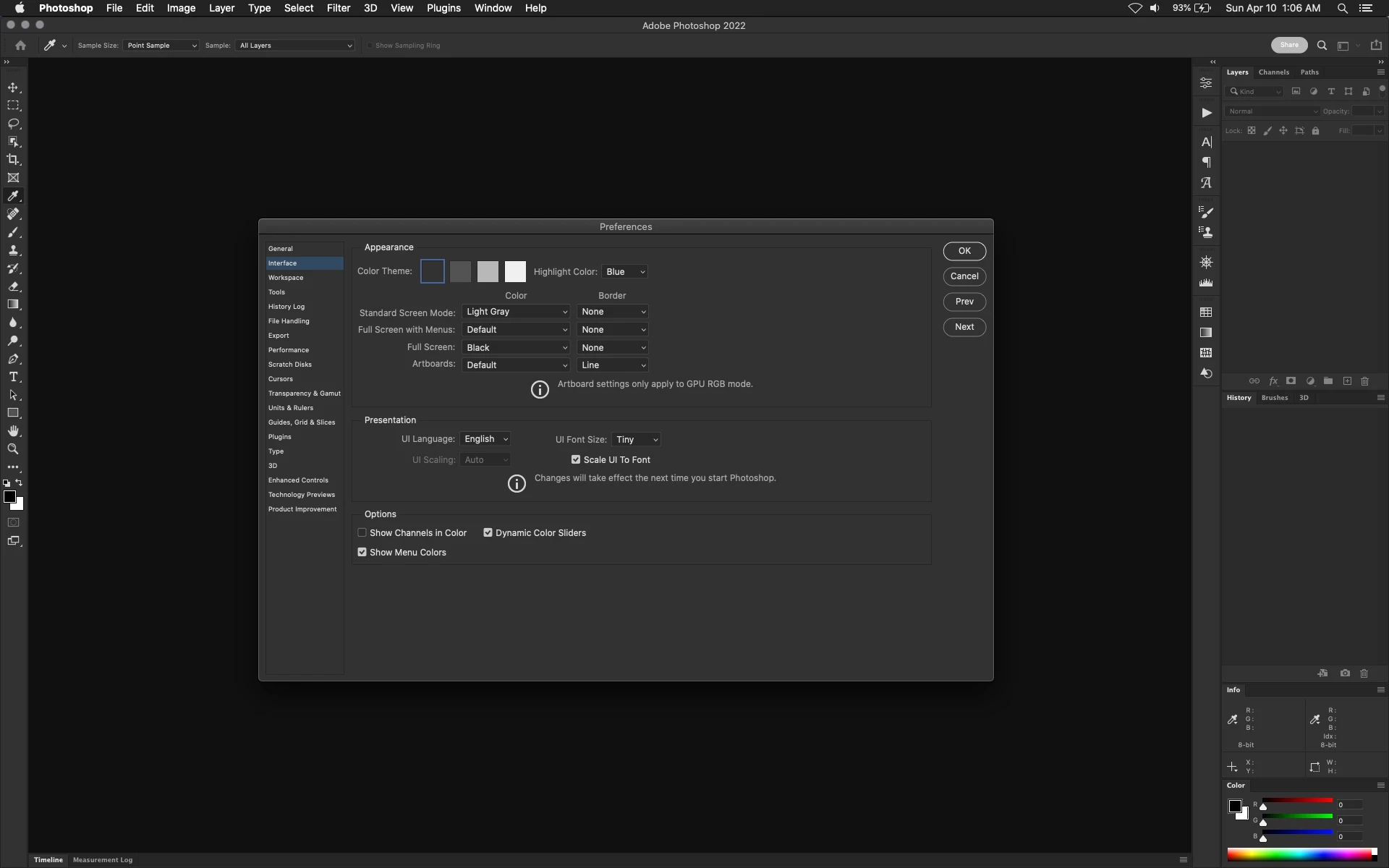 Can the User Interface in the Windows Version of PS be made Black instead of dark gray?