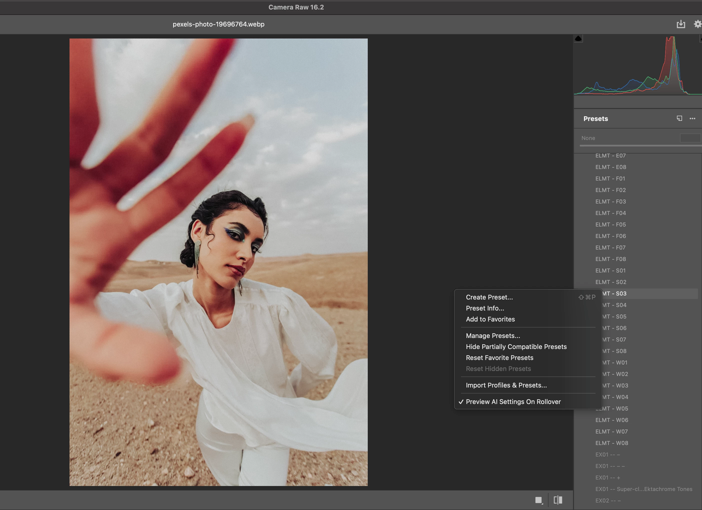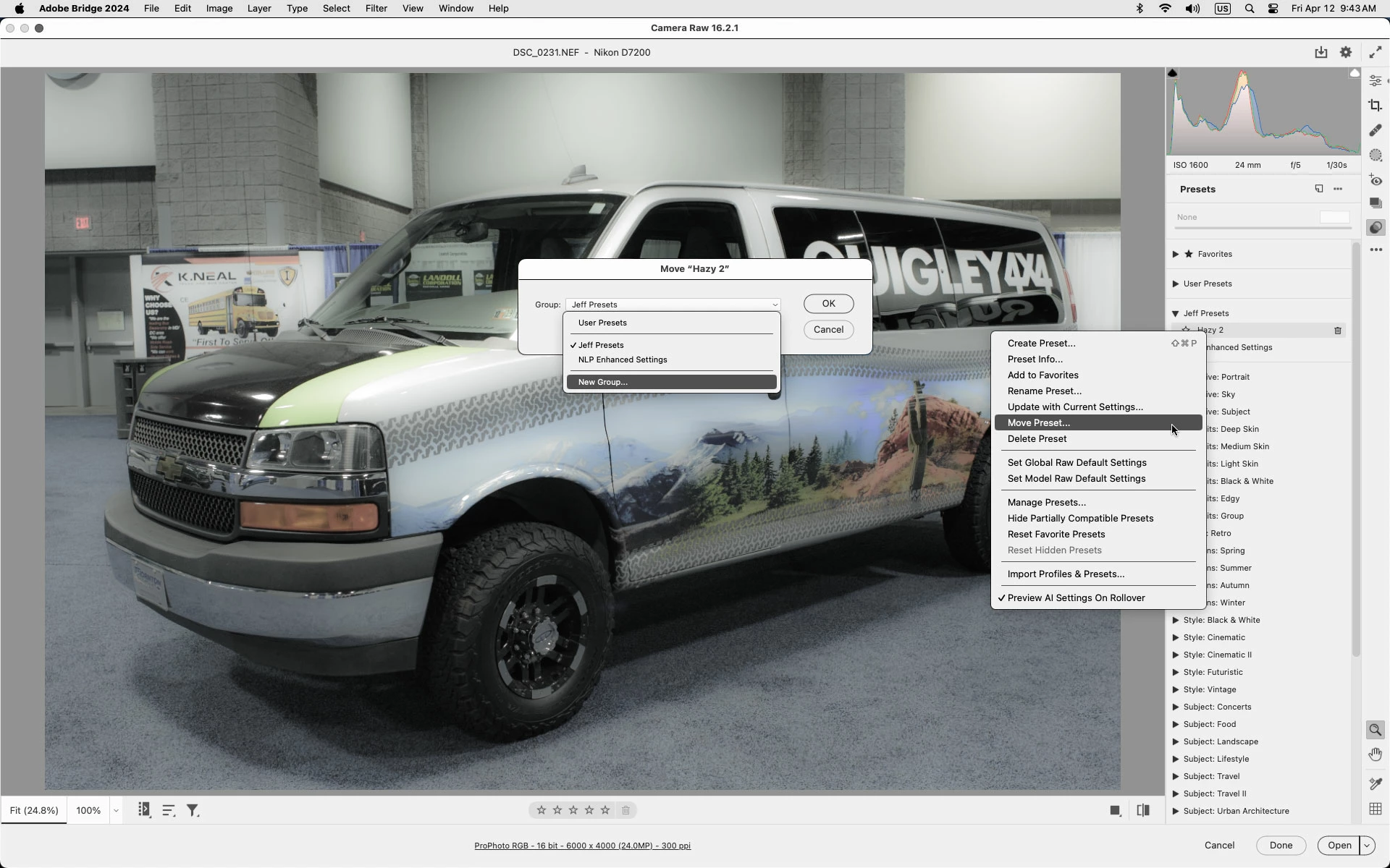Can you put presets in ACR 16 on mac in folders? It is just a long list of user presets and acr presets that are in folders.
