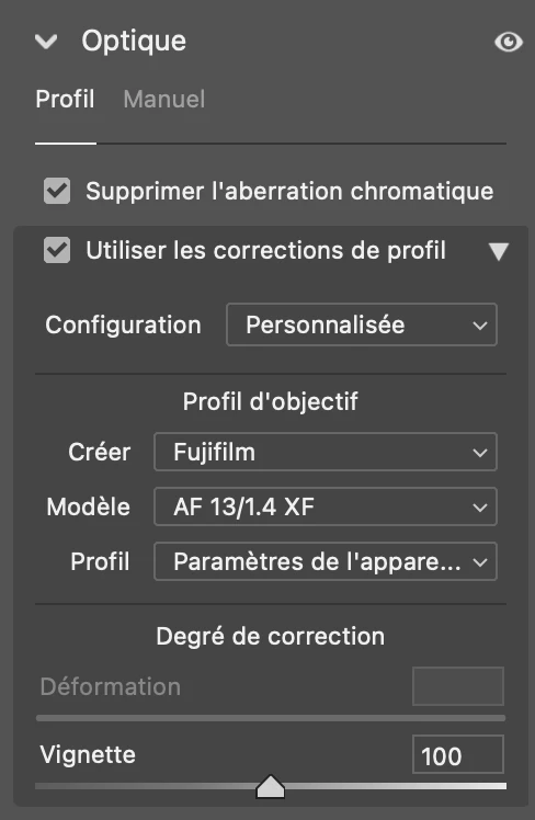 I just registered to Photoshop 2025. I try to open a raw file (RAF) from Fujifilm camera X-S10. My lens is a Viltrox AF 13/1.4 XF. The couple Camera/Lens seems to be supported from the lens database