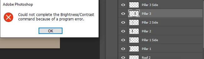 Whenever I try to change the Brightness/Contrast on certain layers i get this error. I have already uninstalled and reinstalled Photoshop without success.