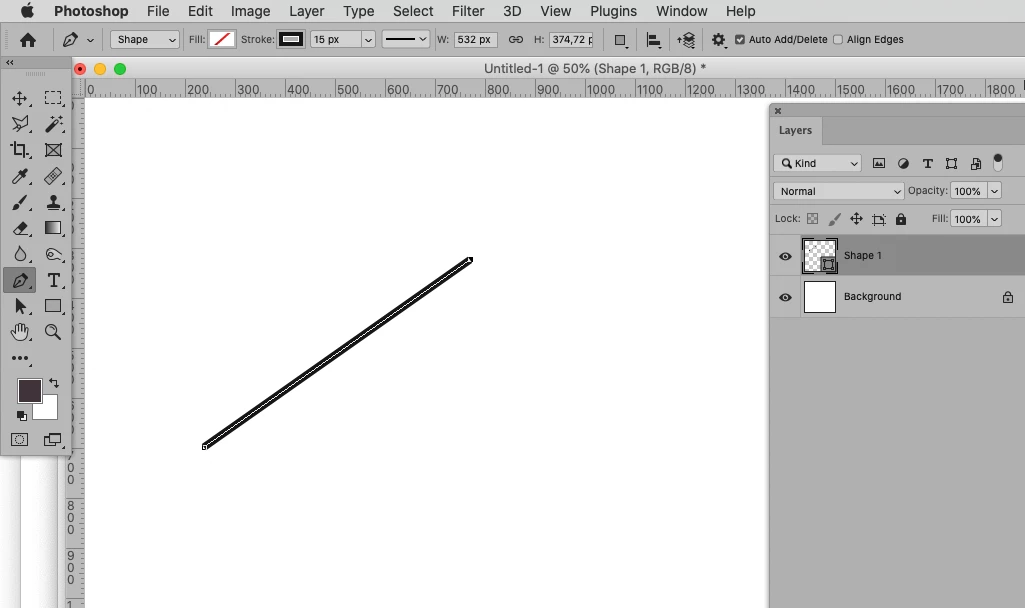 If you want a line, as opposed to a rectangle, you may want to use the Pen Tool.
