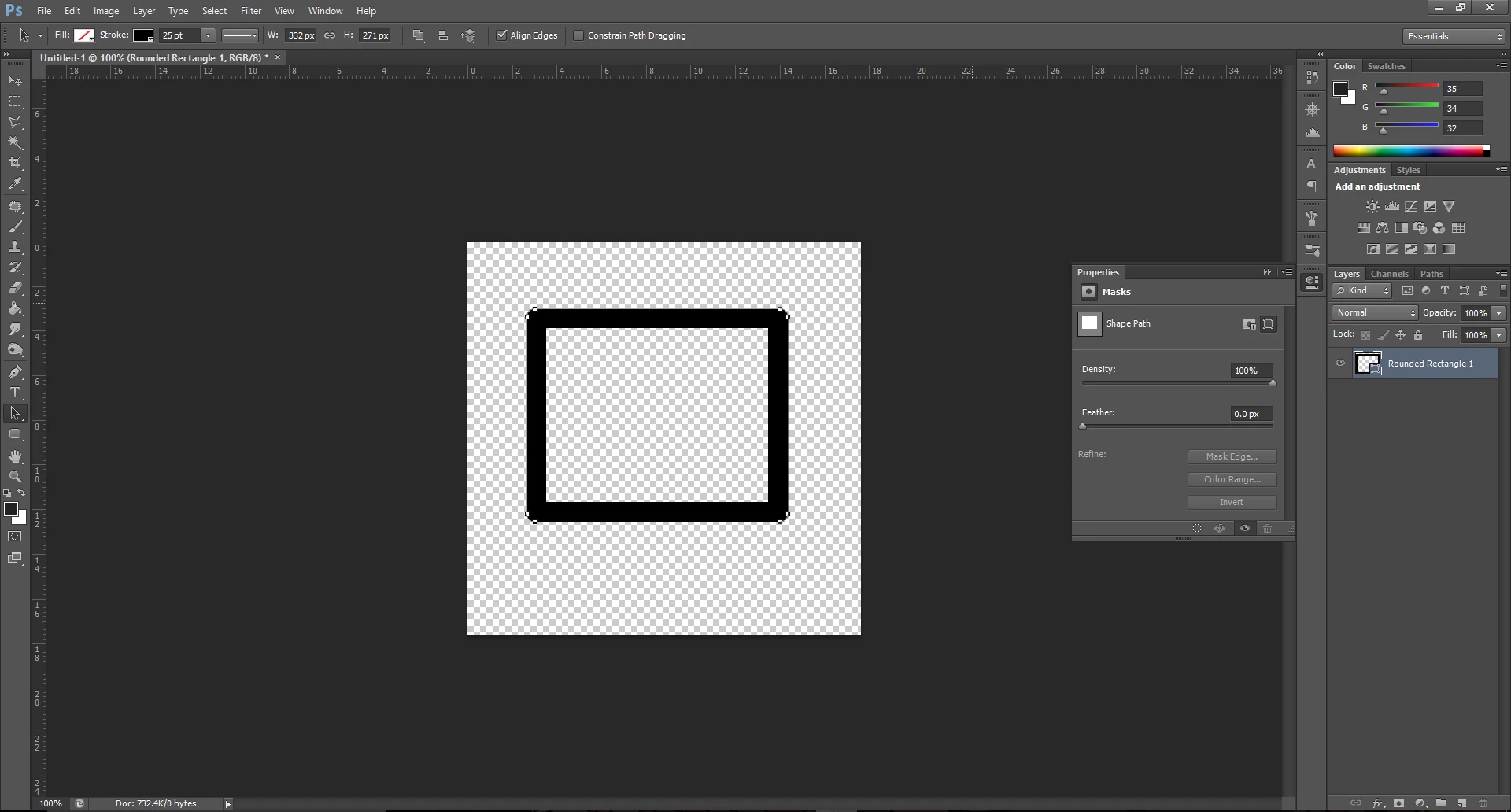I was very sure that in CS6 you could get an options box that looked like this in the properties menu in order to edit the corners of a rounded rectangle. I've tried the commonly suggested solution of selecting the "paths selection tool" (black arrow) in order to reselect the rectangle and then the correct properties box would, in theory, show up. That has not worked for me. I've also been told of the possibility that CS6 doesn't have that options box that I'm looking for at all, which I'm pretty sure isn't true, because I'm rather certain I've used it before in CS6 (though it's not impossible that I could be wrong). Right now the masking options are all I'm getting, as demonstrated below.