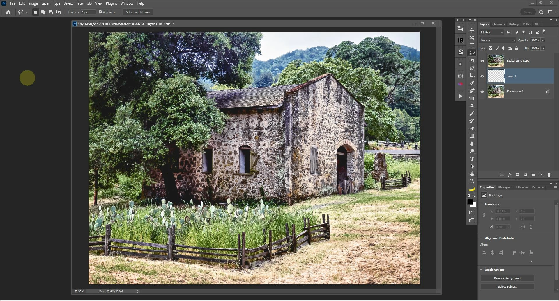 I've opened a new blank (empty) layer in my layer stack above my (locked) Background layer image. A duplicate copy of the background layer is above the empty layer.