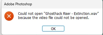 Cannot import .Wav audio files into Photoshop 2023