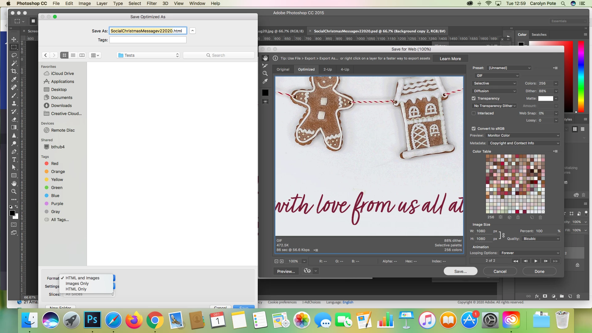 I'm working in Photoshop CC 2015 on a mac and have created an animated file with frame animation. I cannot save it as a gif however??