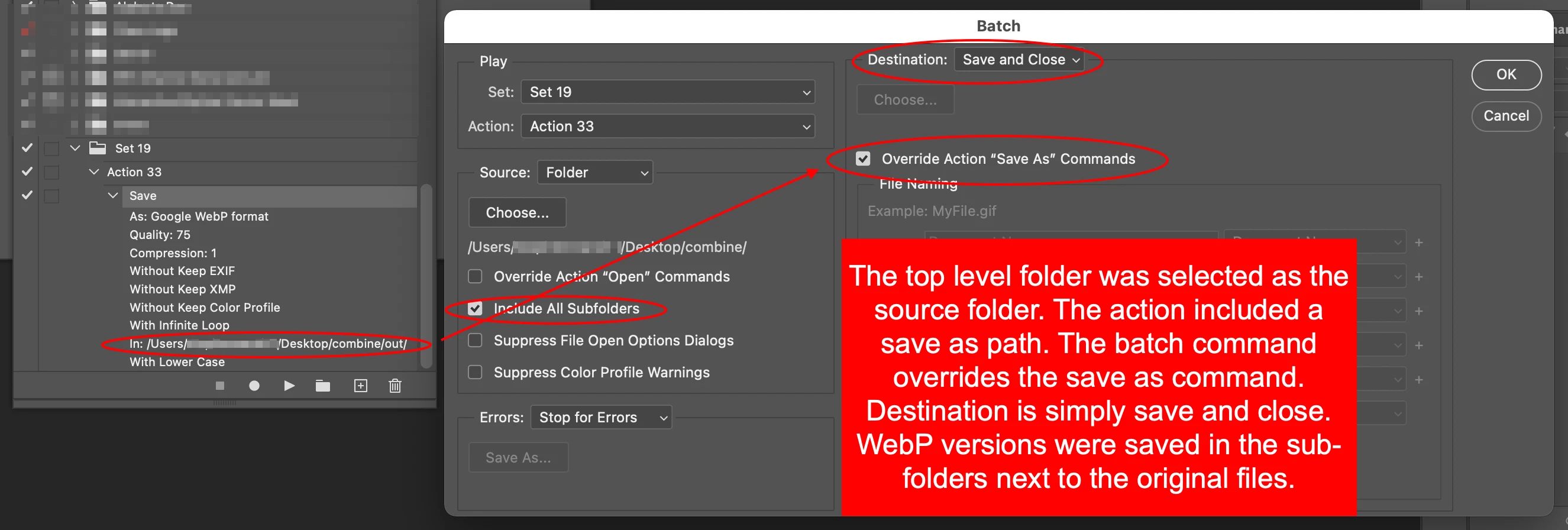 I am trying to save a set of images - all nested in their own subdirectories taken from my website - from JPG to WEBP format.