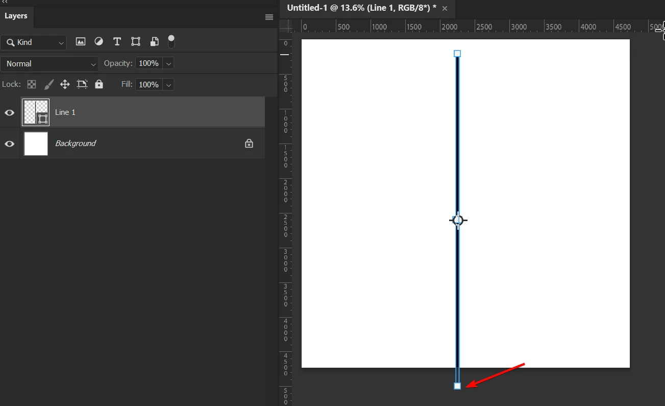 - Create a vertical line (Shape) that extends a little below the bottom edge of the canvas.