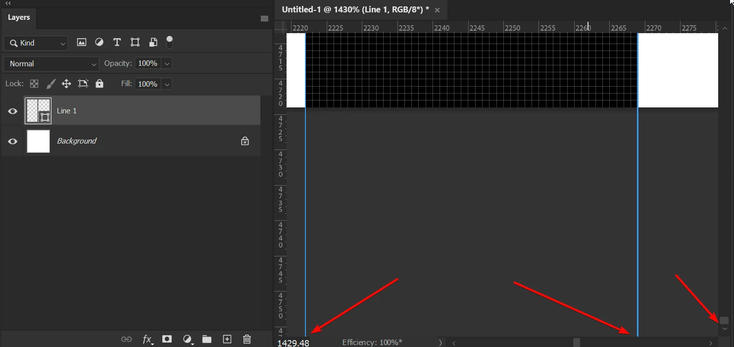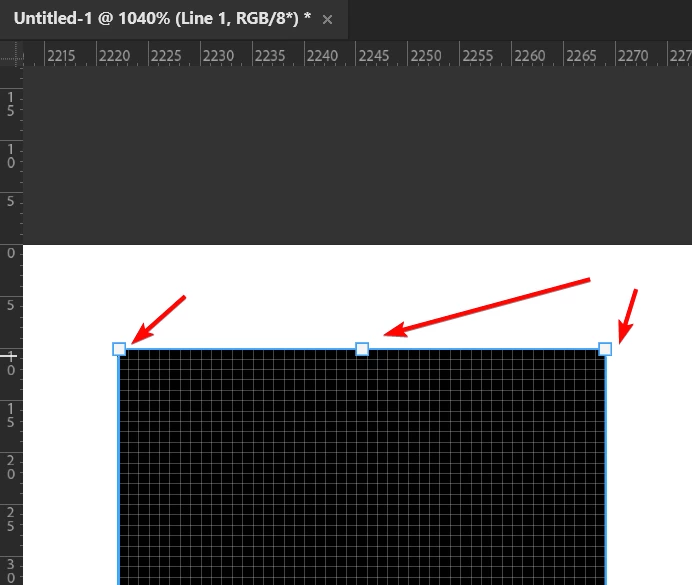 - Zoom in to the top of the line so that you can see the Pixel Grid (make sure View>Show>Pixel Grid is enabled). The control points are visible, This works as expected.