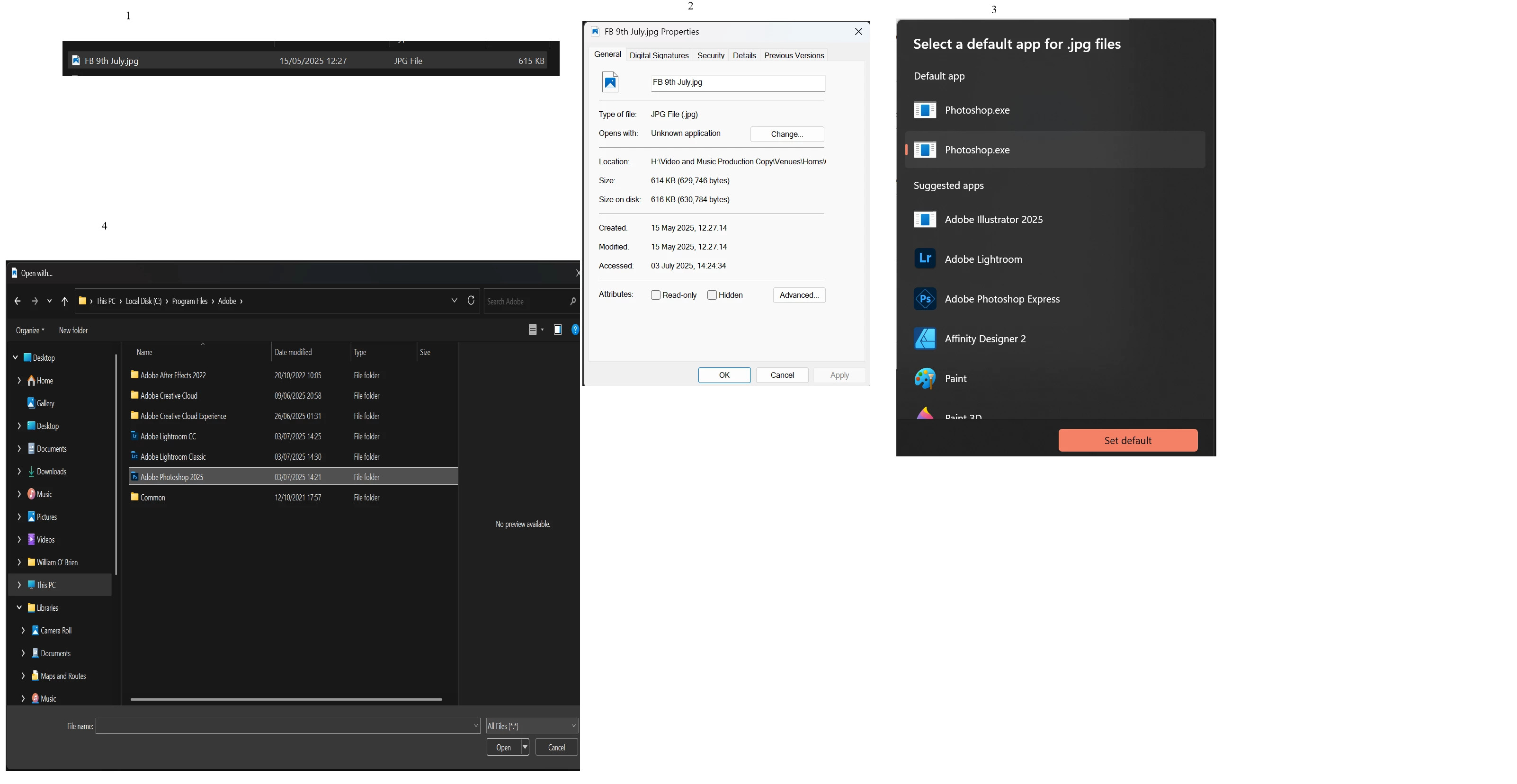 I have tried to set Photoshopas my default app for opening .jpg files. When I navigate to Photshop .exe file and open it it does not work, I can only open .jpgs by navigating to their locacation within Photshop file selector. I'm running Windows 11 and I've noticed that Photoshop is not listed in default apps. I have no issues with psd. files , the Photoshop icon is visible next to the file, implying it's a Photoshop file.