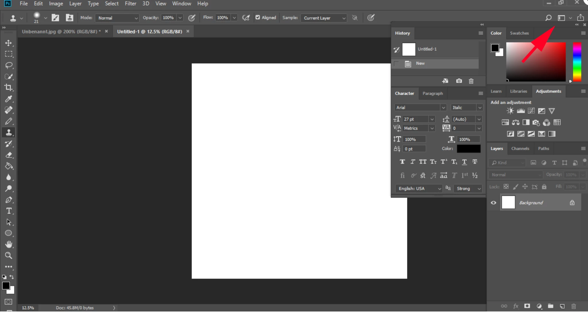 How do I move the canvas to the left, like it was before? The history panel is really disturbing my work.