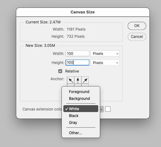 For the canvas size i noticed that the extension colour (background extension) is always stuck on blue, I want it to be white, It was white before and all of a sudden changed to blue.