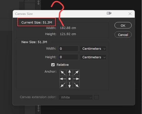 …which is close to the file size shown at the top of your Canvas Size screen shot.