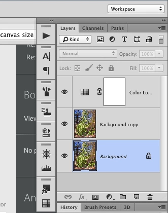 canvas size background colour greyed out