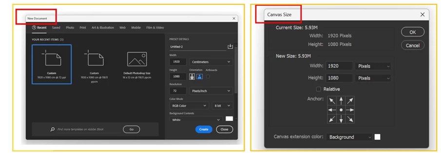As far as I know Canves & New Document are same. Why should Ps use different name?