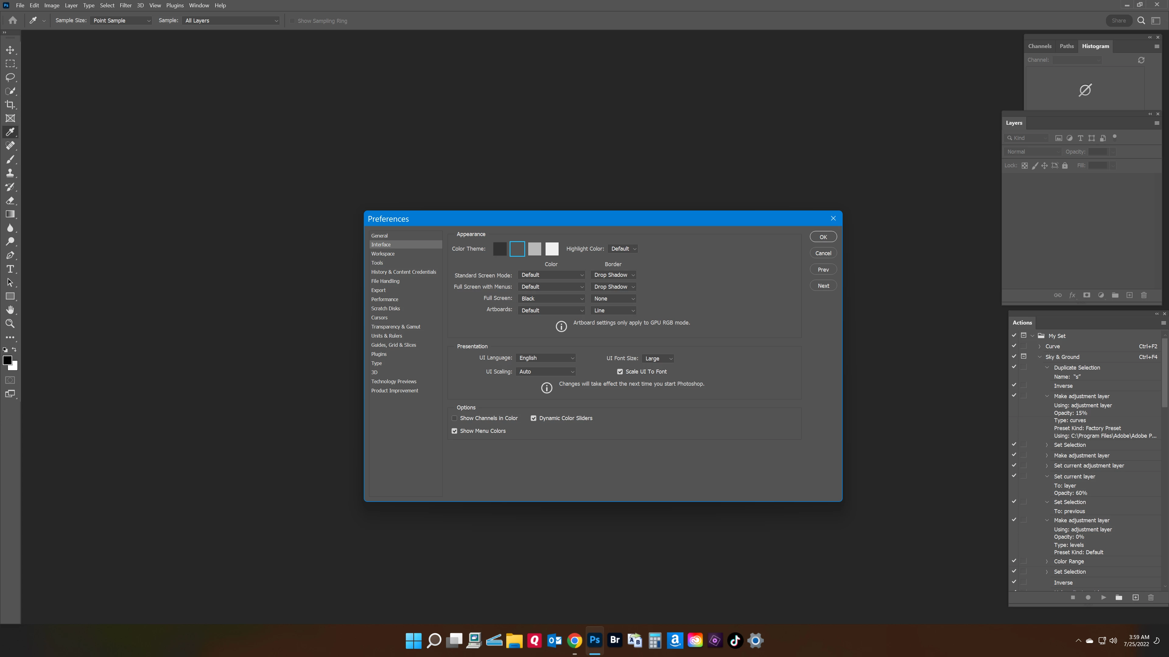 Photoshop requires at least 1280 x 800 screen size after scaling. Assuming you have a 4K monitor (3840 x 2160), 350% scaling would make that screen effectively 1097 x 617 which is below the minimum. Try 200% which would make it 1920 x 1080 and meet those minimum requirements.