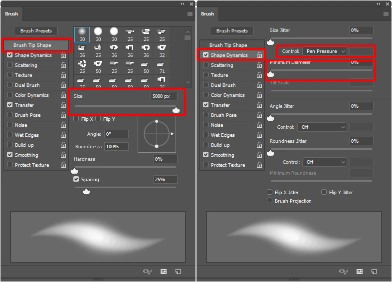 If I make the brush bigger, the minimum size also gets bigger. How can I make the difference between smallest size and biggest size bigger?