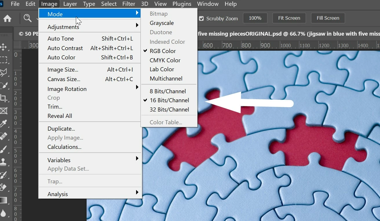 2. I have checked Mode and it appears fine RGB 16 bits channel