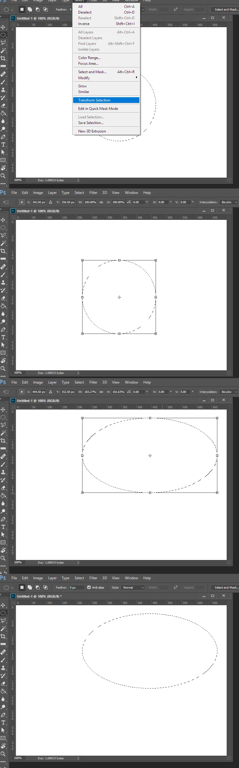 Change I change the size of an elliptical marquee selection?