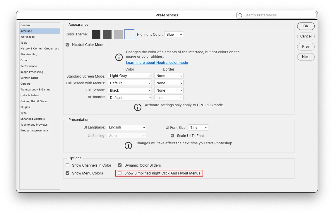 In Photoshop look at Edit>Preferences>Interface and see if you have