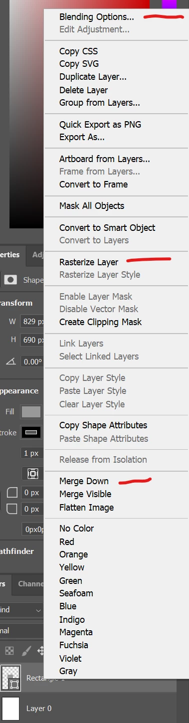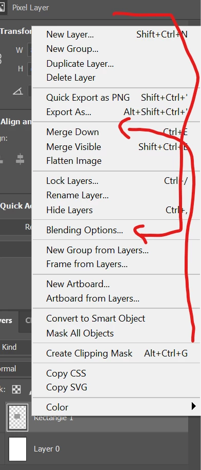 Layer Option List (right click on layer) give you a long list of features such as Blending, Rasterize, Merge, etc.