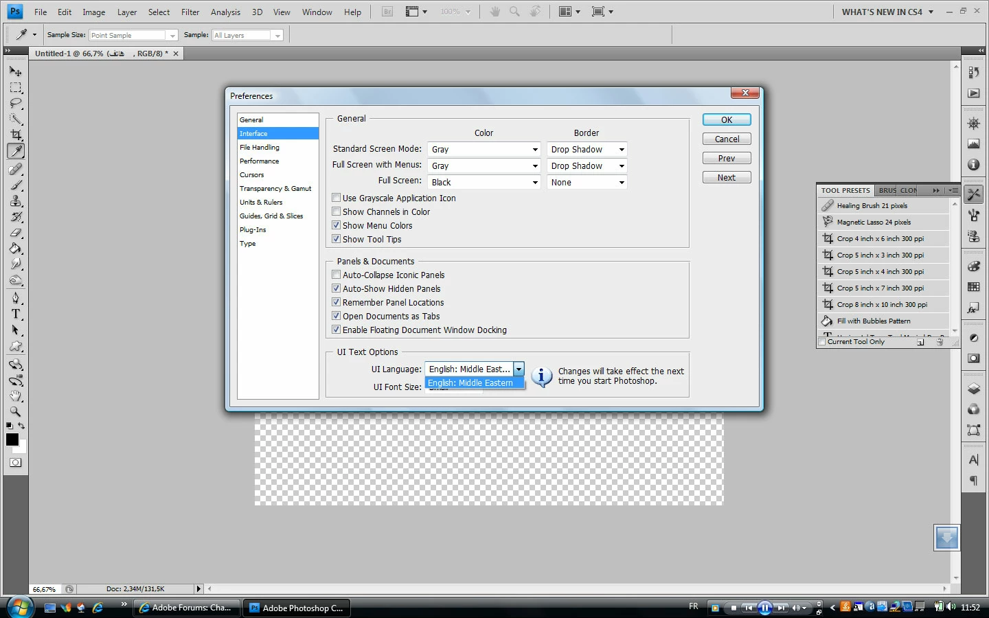 Change UI langage in Photoshop CS4
