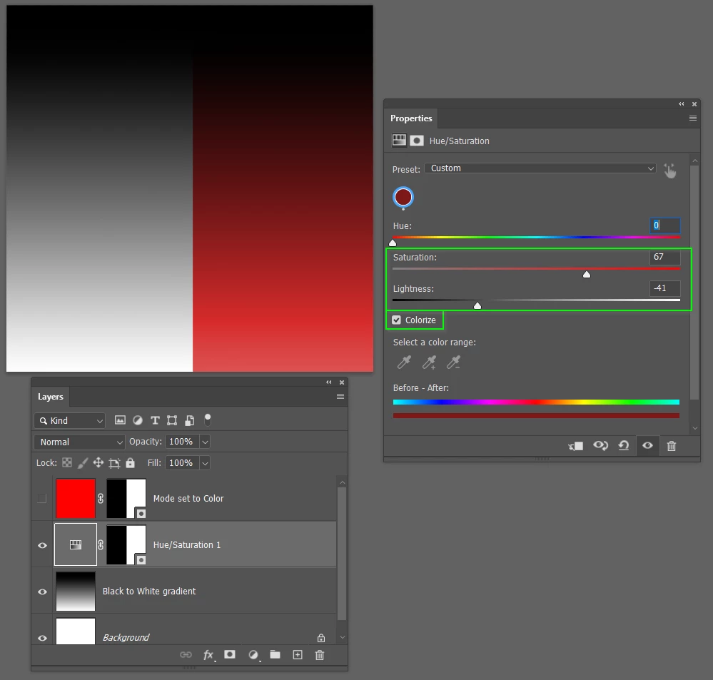 Changing color and keeping texture of the original layer., using paint brush