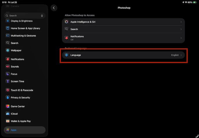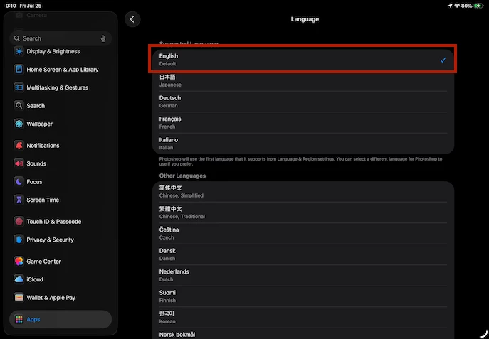 Changing Language in Photoshop for iPad