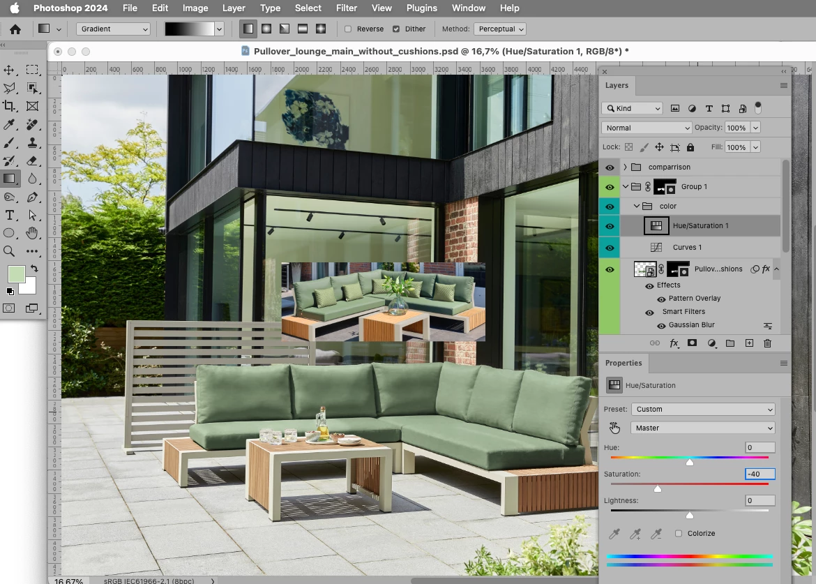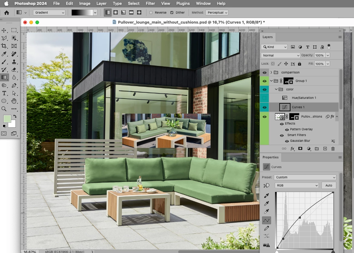 Hoping somebody can provide me with some advice on changing the textures of the cushions on the image below to the same texture as the image at the bottom of this post (textilene)? Any tips to match the colour would also be appreciated 🙂 thanks!