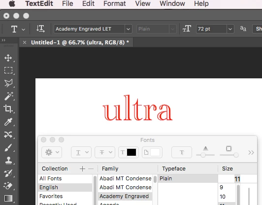 I have a fonts listed with such things as "bold, semi bold, thin" I want to just have the font, then I can select it on the right of photoshop. You can see in the image below what I mean.
