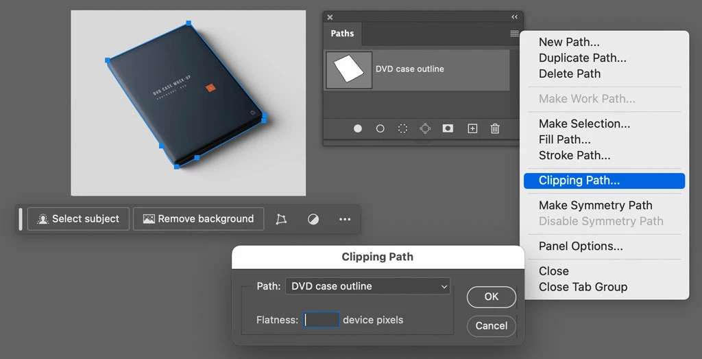I have been told that I need to "Create a clipping mask of the DVD so that it can be separated from the background"