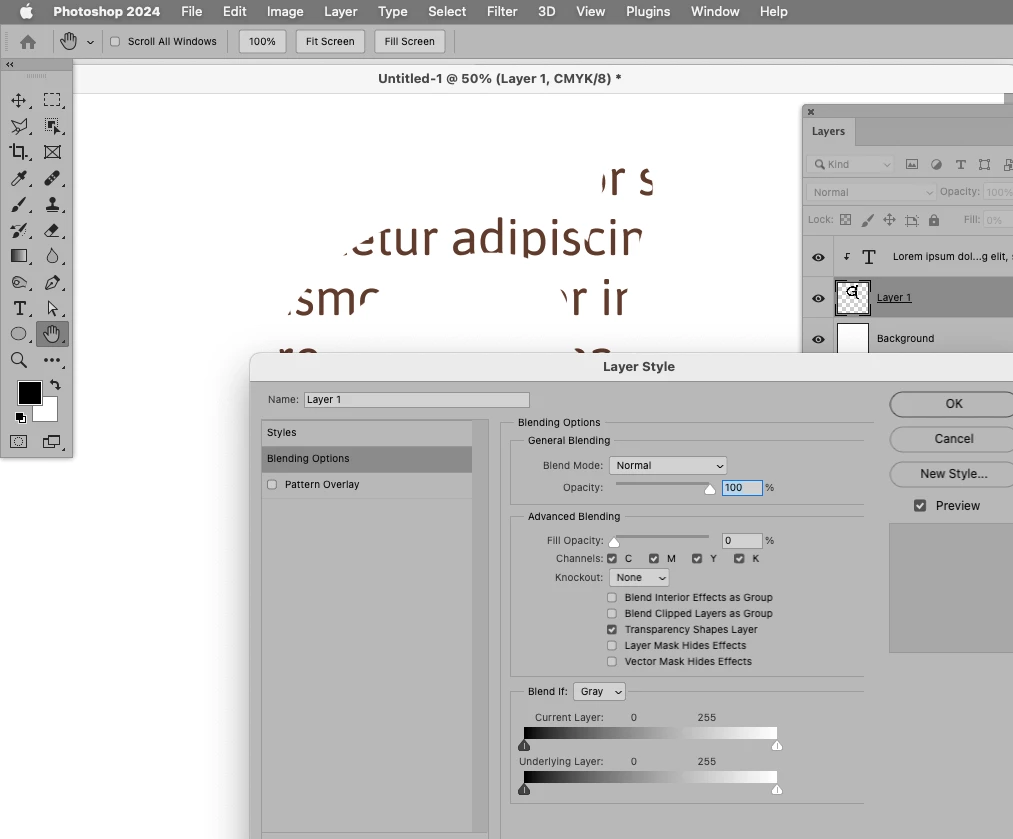 Try setting the base-layer to Fill 0% and uncheck »Blend Clipped Layers as Group«.
