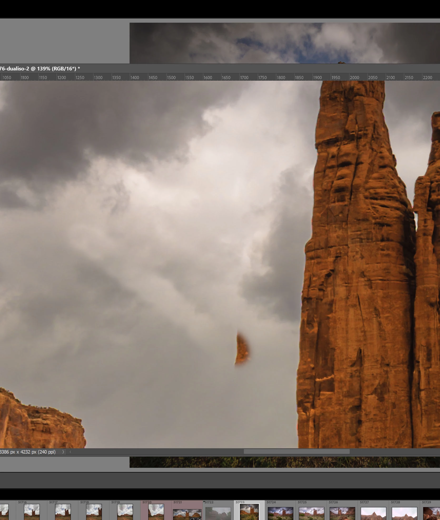 After selecting the clone source point, the cloning jump to the left and up and starts cloning from there. As you can see, rather than cloning the side of the rock I selected, the clone point jumped up and left and started cloning from there.