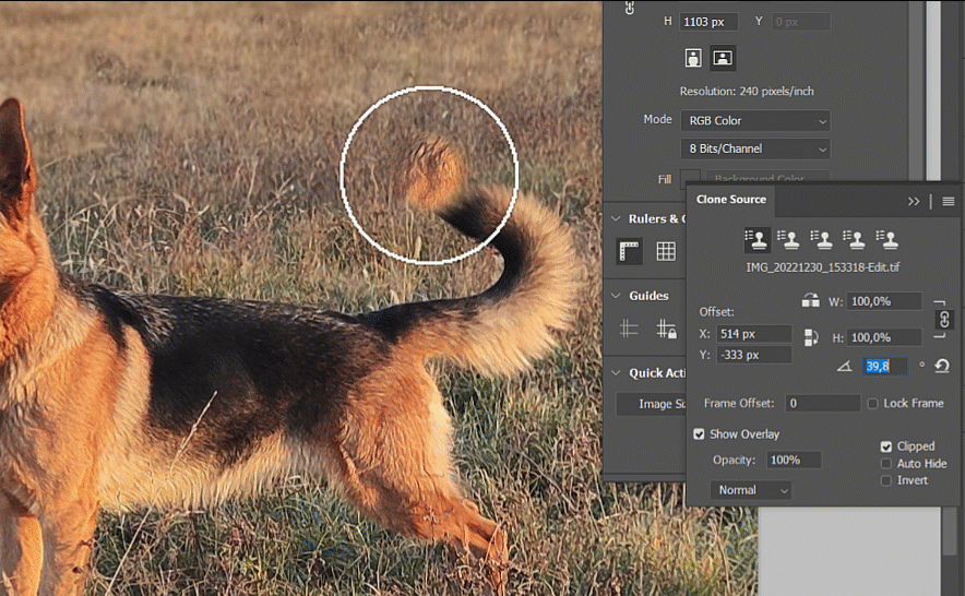 Clone stamp tool source does not rotate as expected.