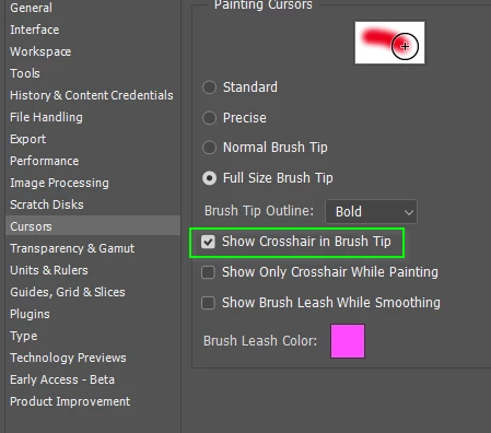 Clonestamp is crosshairs at lower pixels but OK when get to 14 px