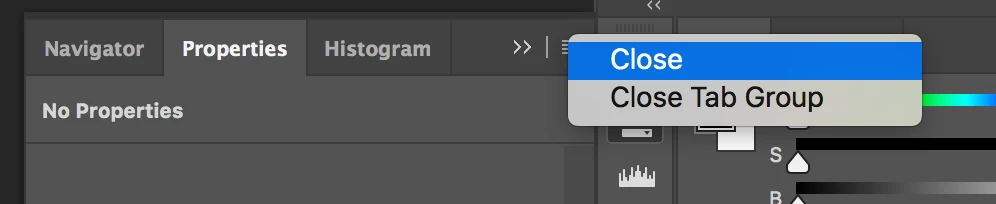 Using the GUI of the Properties panel to close...
