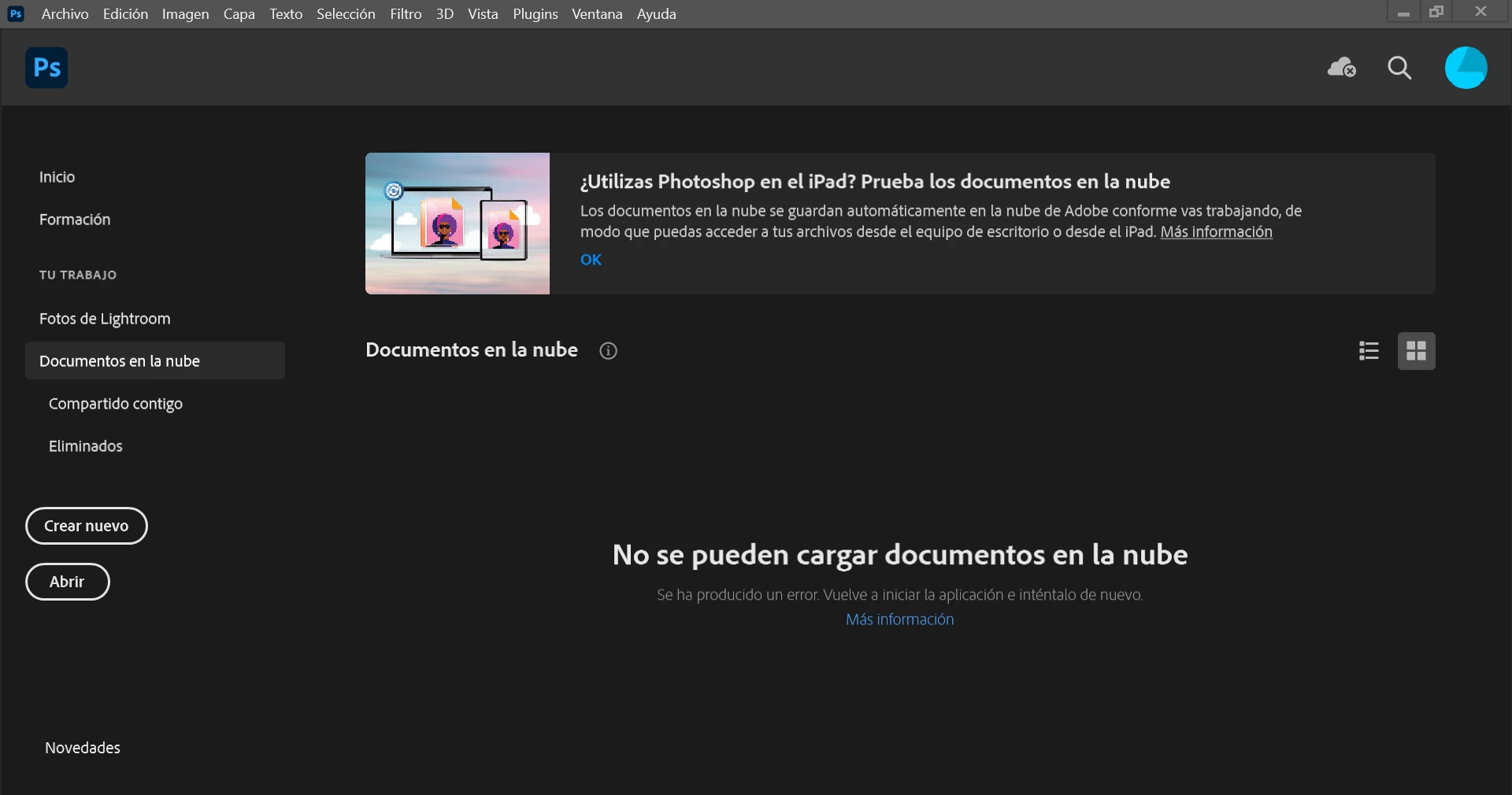 I wanted to use some files from the cloud on photoshop, but they are not showing up. It just says that those files can't load.