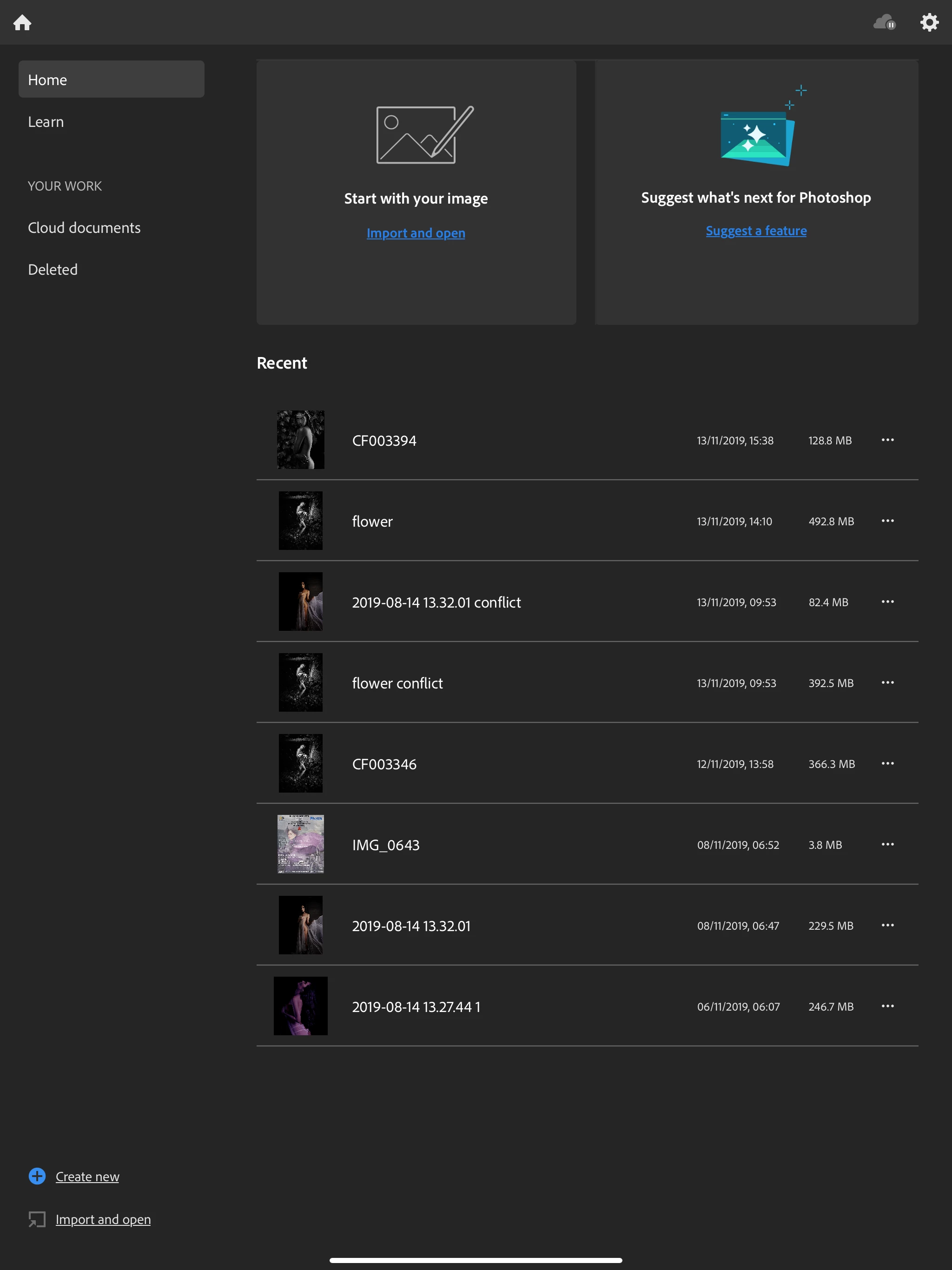 Also, can you check your work on your desktop by going to Photoshop -> Cloud documents ?