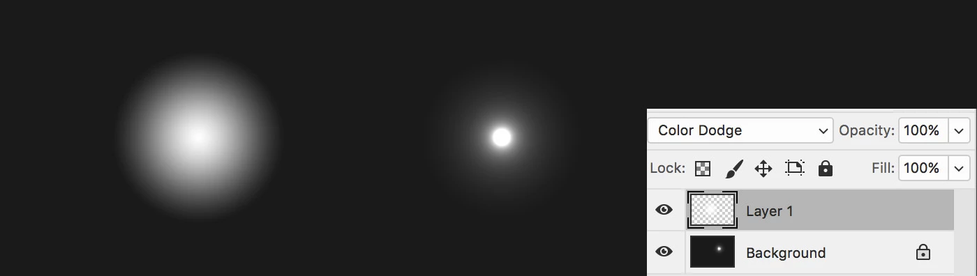 I've noticed the layers Color Dodge blend mode in Photoshop CC 2017.1 isn't working as it used to. For example in the graphic above, the white orb layer on the left is set to Color Dodge but appears the same as when set to Normal. It should look like the one on the right.