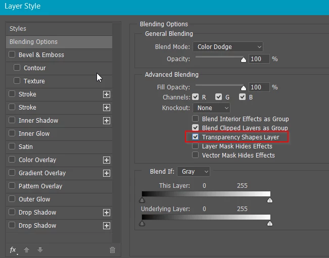 I was able to get the same effect by unchecking the transparent shape layer, but in recent versions, when I reopen the file, it goes back to being checked.
