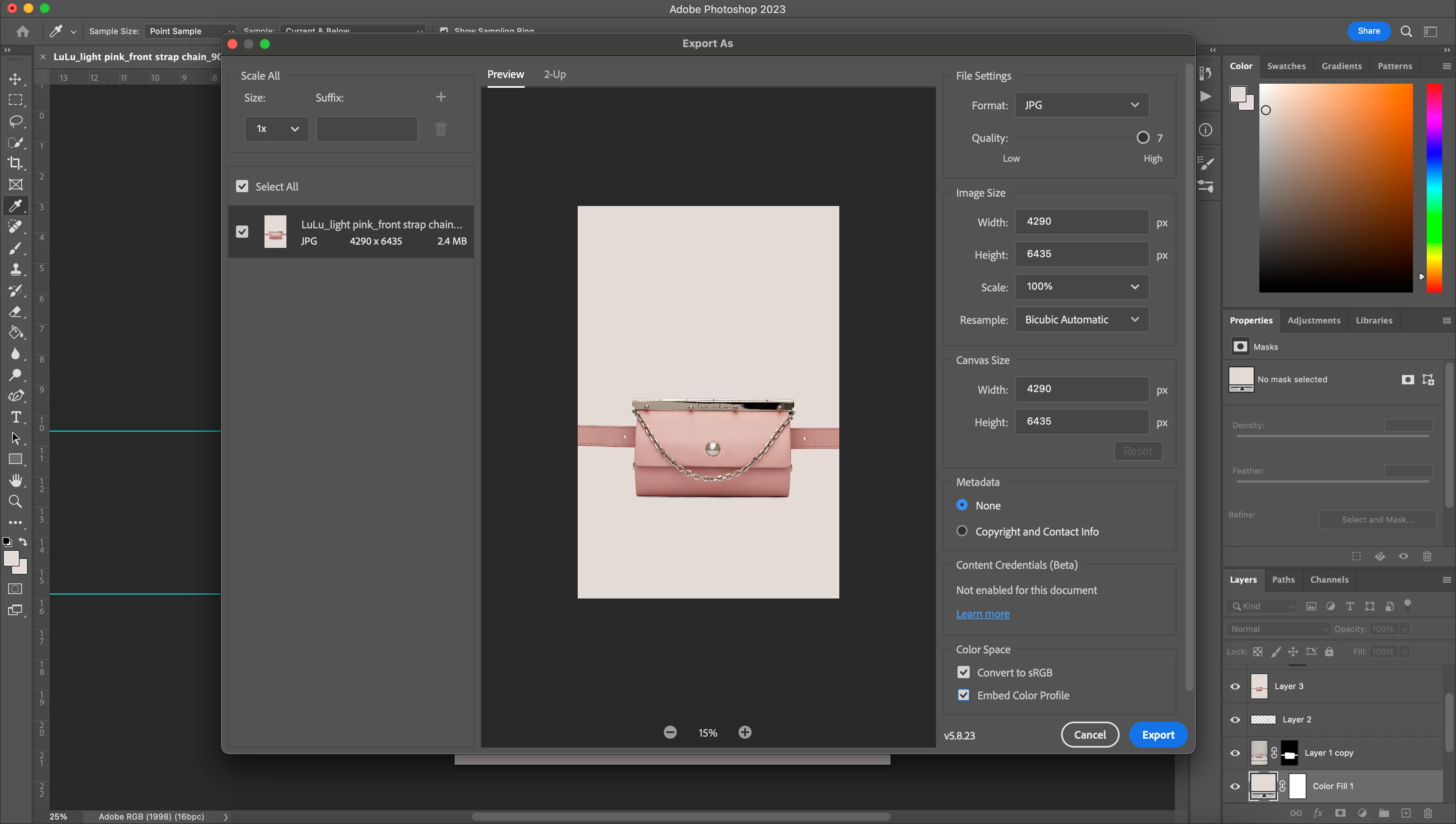 Color exporting are wrong after exporting to jpeg