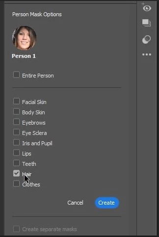 2) Use Masking to find "People" and create individual masks for Hair and Lips,