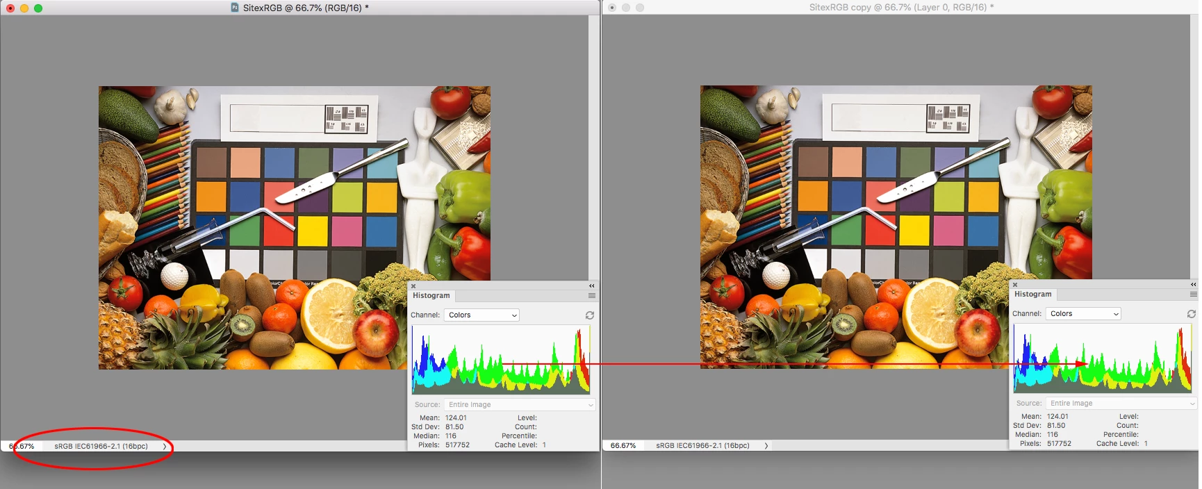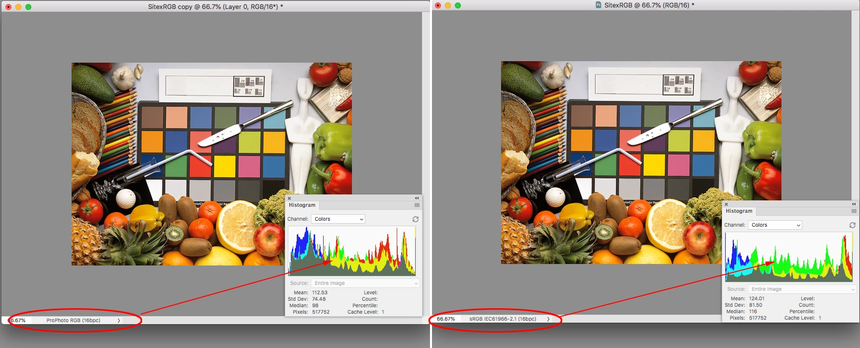 In other words, for the internal calculation of Photoshop, it is the same to make an adjustment in Prophoto and then convert to sRGB for export, than make the adjustment directly in sRGB (maintaining 16 bits in both cases)? or making it with sRGB have color losses because of the calculation?