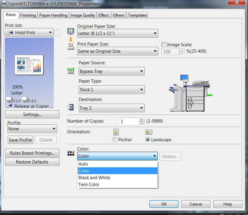 Fairly new to Photoshop/ Adobe creative cloud, I am trying to print a file and my grays are printing out purple. I've noticed on previous form discussion people note to disable print settings. I am using a toshiba estudio printer, I am only seeing my options as color, auto, black and white or twin. Nothing about disabling. Is this something within photoshop I need to adjust as well?