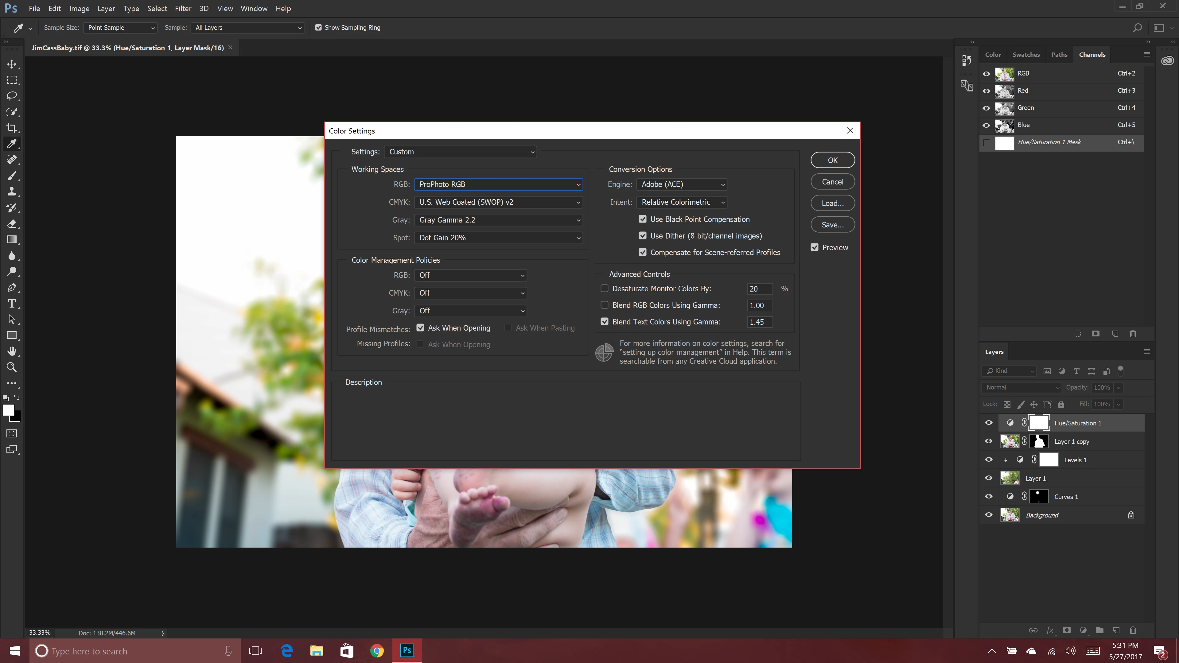 After this, i went into Photoshop and made sure stuff was in ProphotoRGB. It's what people on youtube said to use.