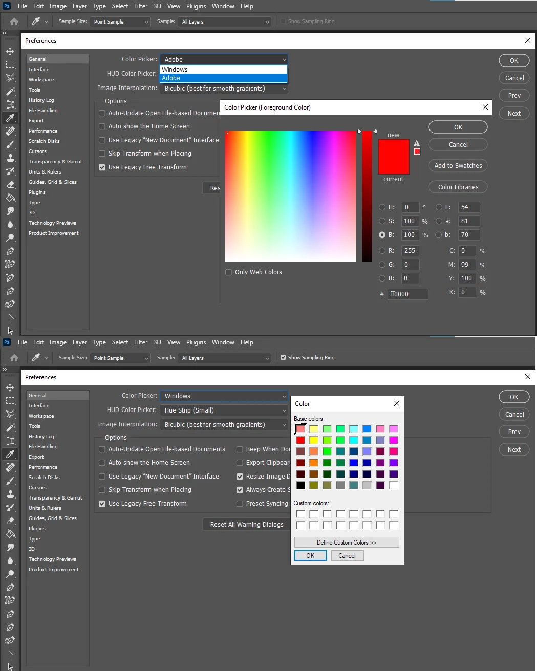 ever since the upgrade to v22 in Photoshop my color picker looks like this, any suggestions how to rectify this