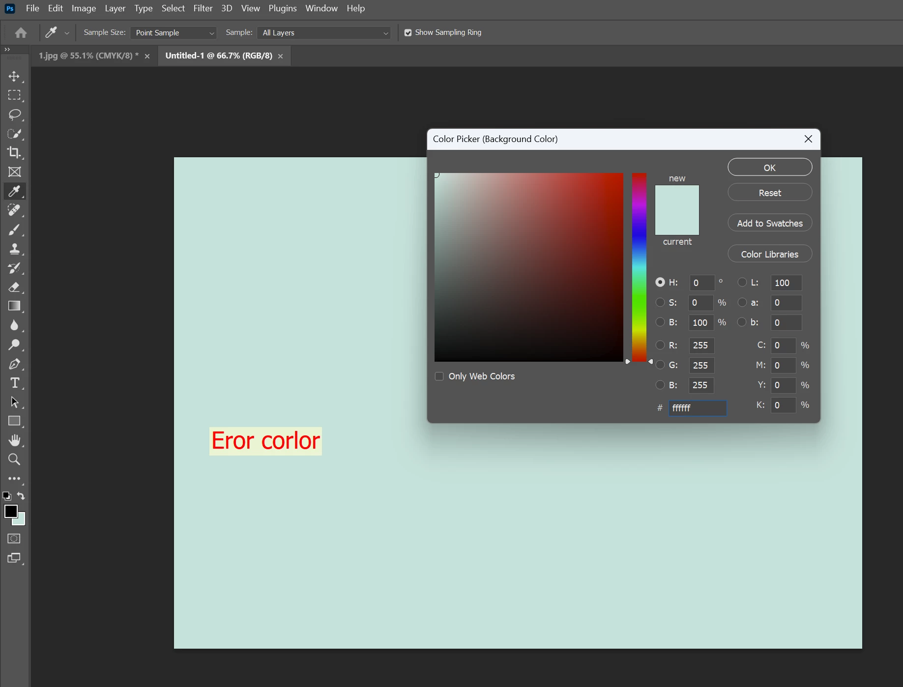Color rendering error in photoshop beta