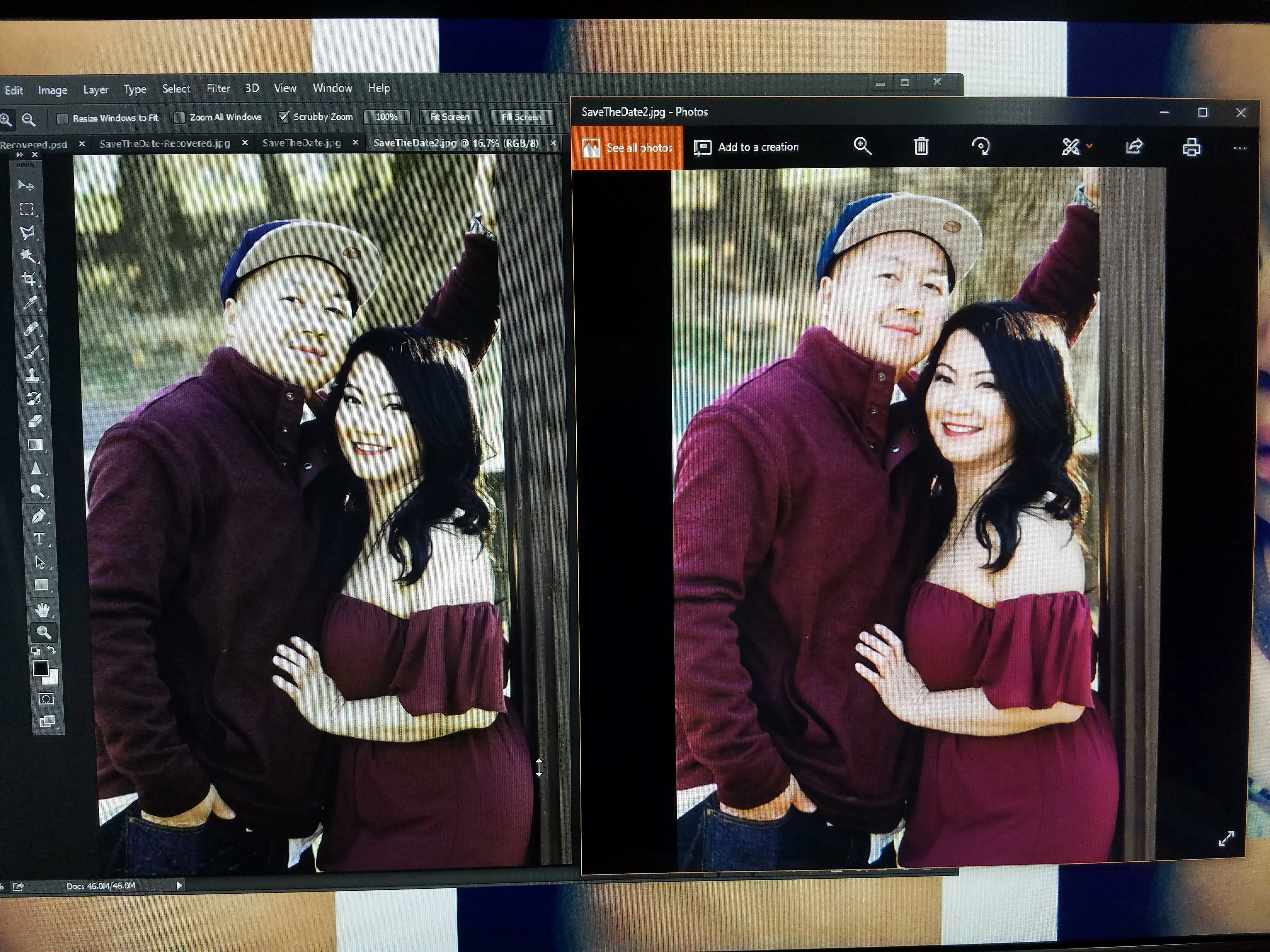 (Right: Photoshop, Left: Photos app. Same picture displayed on different programs)